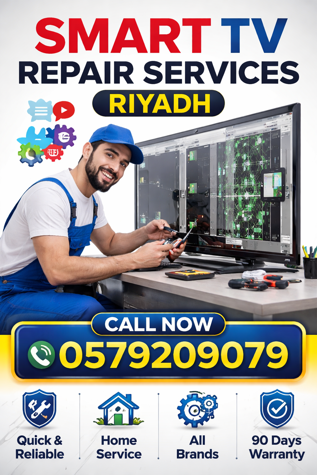 Welcome to Smart Tv Repair Service Riyadh, your trusted destination for expert television restoration and maintenance. We specialize in high-quality repairs for all major brands, ensuring your home entertainment system performs at its absolute best.We provide fast and professional TV repair services for all brands including Samsung, LG, Sony, TCL, HAIER, SKYWORTH, CLASS PRO, MTC, DANASAT, Hisense , Nikai, KMC, TIT, TOSHIBA, and more. Call or WhatsApp us now for same-day service.